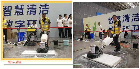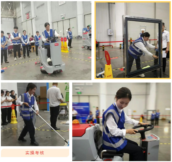 保潔組·蔣蘭蘭 & 羅瑩: 在緊張的理論考核后,兩位選手在玻璃清潔、塵推使用等多個保潔實操項目中動作規(guī)范、流程*,更在《洗地機一級保養(yǎng)及常見問題處理》的抽簽問答環(huán)節(jié)對答如流。其中,羅瑩憑借穩(wěn)定發(fā)揮榮獲保潔組十佳,二人的專業(yè)素養(yǎng)均獲得了裁判的一致好評。