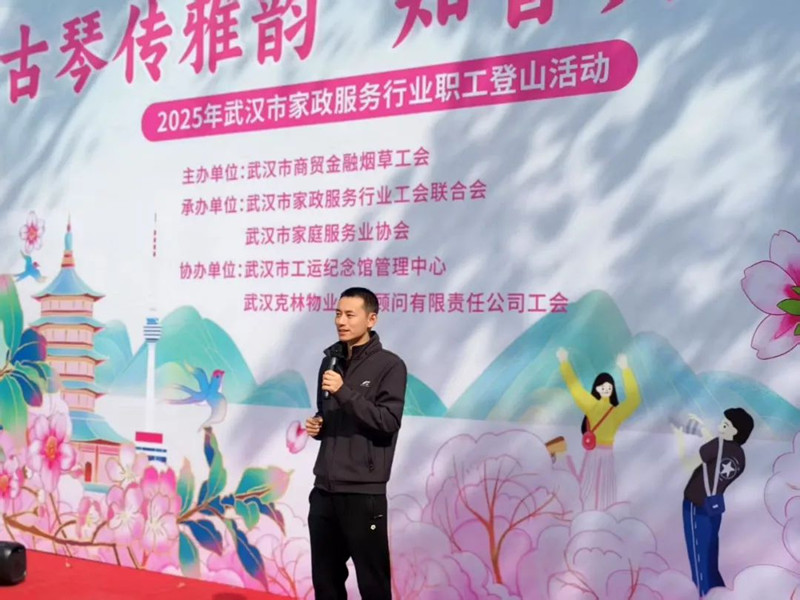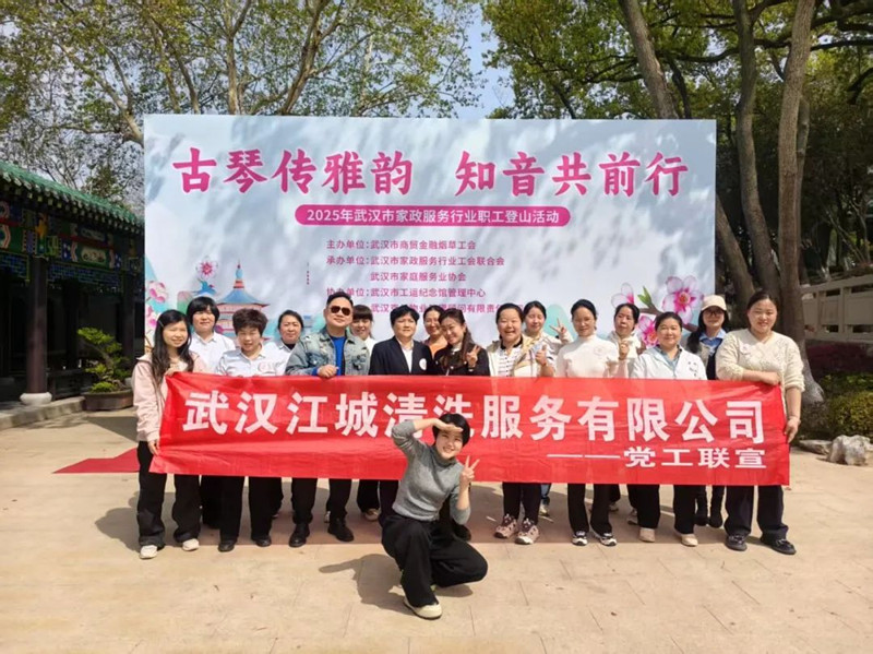 2025 年 4 月 3 日上午, “古琴傳雅韻 知音共前行” 2025年武漢市家政服務(wù)行業(yè)職工登山活動(dòng)在古琴臺(tái)舉行。武漢市總工會(huì)二級(jí)巡視員周?chē)?guó)華、武漢市總工會(huì)商貿(mào)金融煙草工會(huì)三級(jí)調(diào)研員董珊丹、武漢市家政行業(yè)工會(huì)主席楊浩、武漢市家庭服務(wù)業(yè)協(xié)會(huì)會(huì)長(zhǎng)項(xiàng)丹等..出席活動(dòng)。工會(huì)主席李友慧、黨支部書(shū)記方園親自帶隊(duì),組織江城清洗公司職工代表積極響應(yīng),熱情參與此次活動(dòng)。