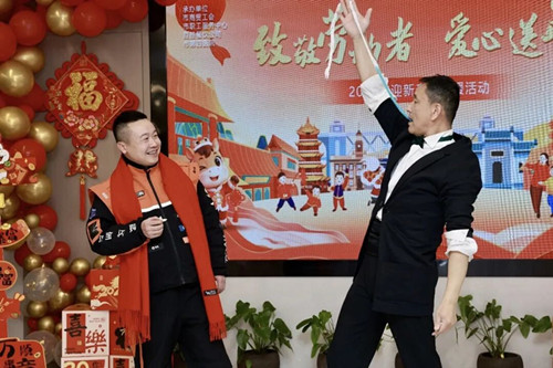 活動(dòng)現(xiàn)場暖意涌動(dòng),市總工會(huì)黨組成員、副主席劉斌等領(lǐng)導(dǎo)為現(xiàn)場一線勞動(dòng)者系上象征吉祥與溫暖的紅圍巾,送上美味的年飯?zhí)撞团c暖心大禮袋,一份份心意滿載著對(duì)勞動(dòng)者的敬意與新春的祝福。