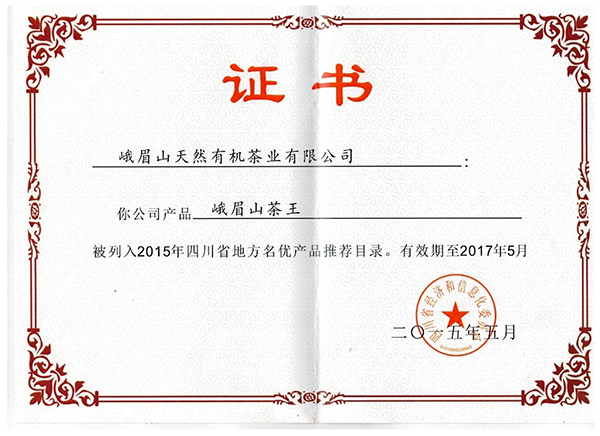 入選 “行南絲綢之路,游大熊貓故鄉(xiāng)”四川省一帶一路海外推薦會唯一推薦品牌 “峨眉山茶王”被列為2015年四川省地方名優(yōu)產(chǎn)品推薦