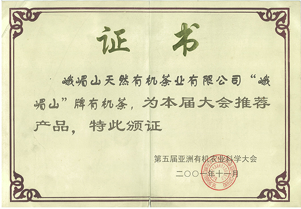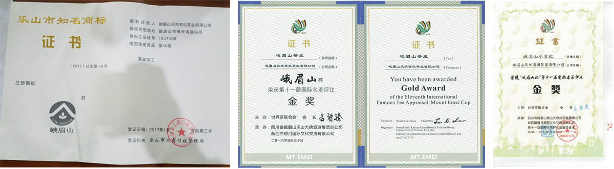 成為“四川省著名商標(biāo)” 四川國際秋季茶博會茶評比大賽金獎 “峨眉王茶王”峨眉山杯榮獲十一屆國際名茶評比金獎 “峨眉山小葉紅”榮獲峨眉山杯第十一屆國際亞太茶茗金獎