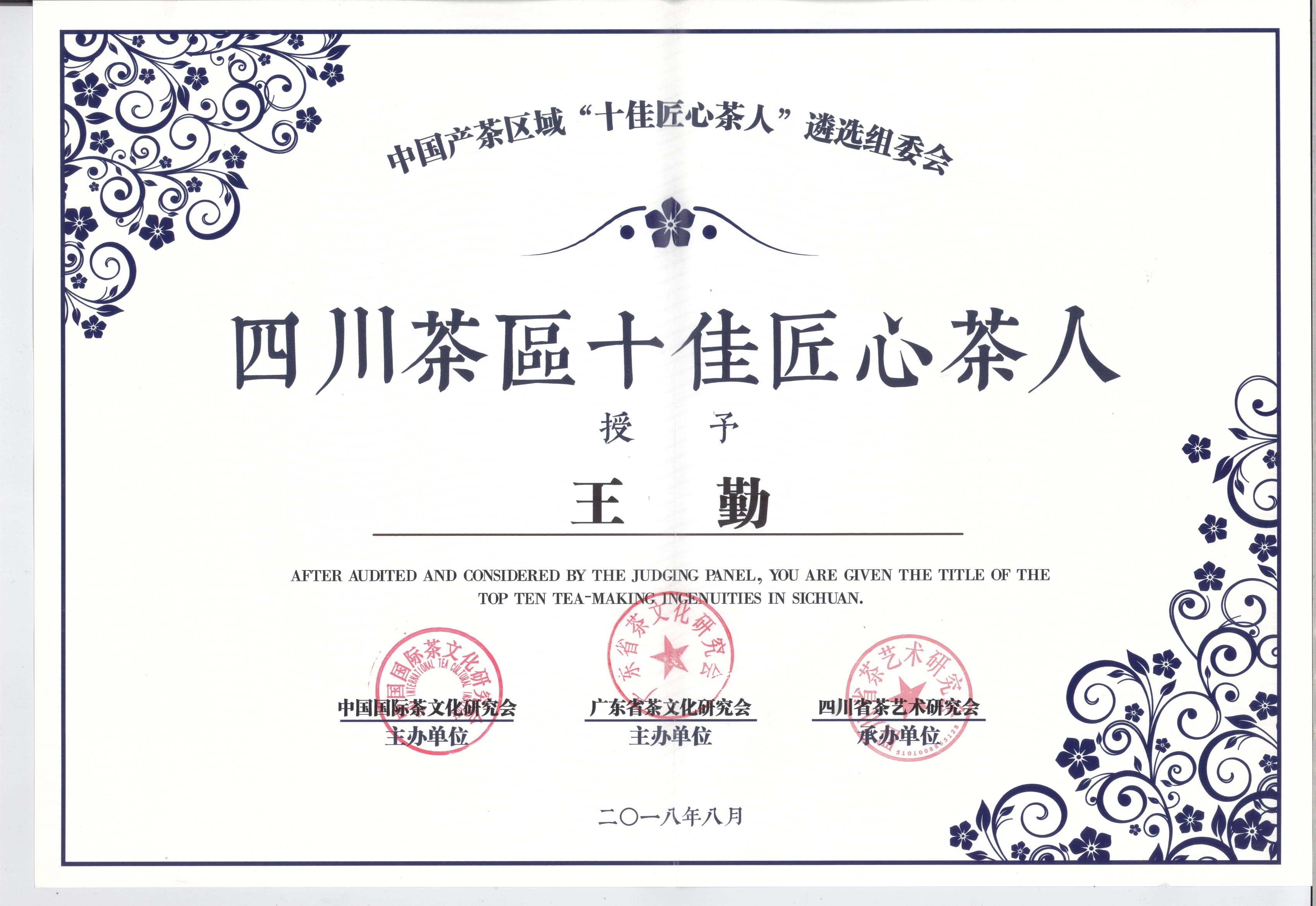 創(chuàng)始人王勤榮獲四川十大匠心茶人稱號 茶王開悟榮獲日本Good-Design大獎